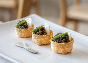 Each glossy pearl shimmers in deep shades of gray to jet black, releasing a smooth, creamy texture and delicate nutty finish with every bite. Its subtle salinity and lingering umami make it an exceptional choice for those who appreciate harmony, depth, and refinement in their caviar.