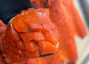 Discover the timeless tradition of Yukola Salmon Salt-Cured Fillets, prepared using an authentic Native American recipe passed down through generations. This delicacy celebrates the art of natural preservation — simple, pure, and deeply flavorful. Made from premium wild or sustainably farmed salmon, each fillet is salt-cured and air-dried to perfection, delivering a tender yet firm texture and an unmistakably rich, savory taste that honors its Indigenous roots.